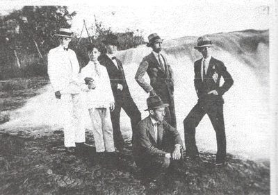 Foto de 1929, de um passeio de jovens ituveravenses a Cachoeira Salto Belo. (1) Pedro Faria, (2) José de Freitas, (3) Moacir França, (4) Leonardo Cordaro (“Nardo”), (5) Henrique Flores Peres e (6) Eugênio Cordaro (“Nenê Cordaro”)