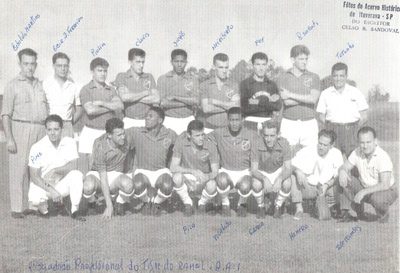 Foto dos anos 60, do time da Associação Atlética Ituveravense, o Tigre do Ramal, que era considerado um dos melhores da época, e disputou a Segunda Divisão da Federação Paulista de Futebol. (1) o técnico Herbaldo Martins, (2), (3), (4) e (5) Dr. Ecyr Alves Ferreira, Antônio (“Totonho”) Sandoval, Eurípedes Ribeiro (“Pino”) e José Aureliano Coimbra, diretores da AAI, (6) Piolim, (7) Clóvis, (8) Zicão, (9) Neiriberto, (10) Poy, (11) Roberto Salata, (12) não identificado, (13) Gomes, (14) Pilo, (15) Vila Lobos, (16) Garoa, (17) o massagista Homero Perez
