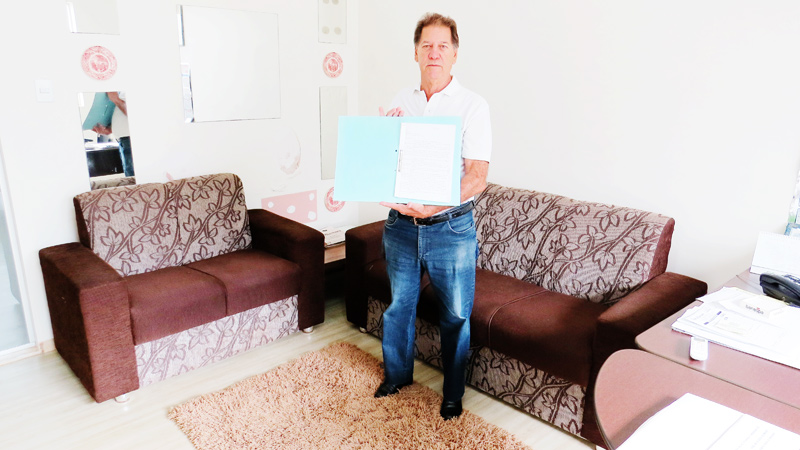 José Roberto Nogueira (“Pagão”) com os documentos que comprovam que ele criou o projeto, em 1991