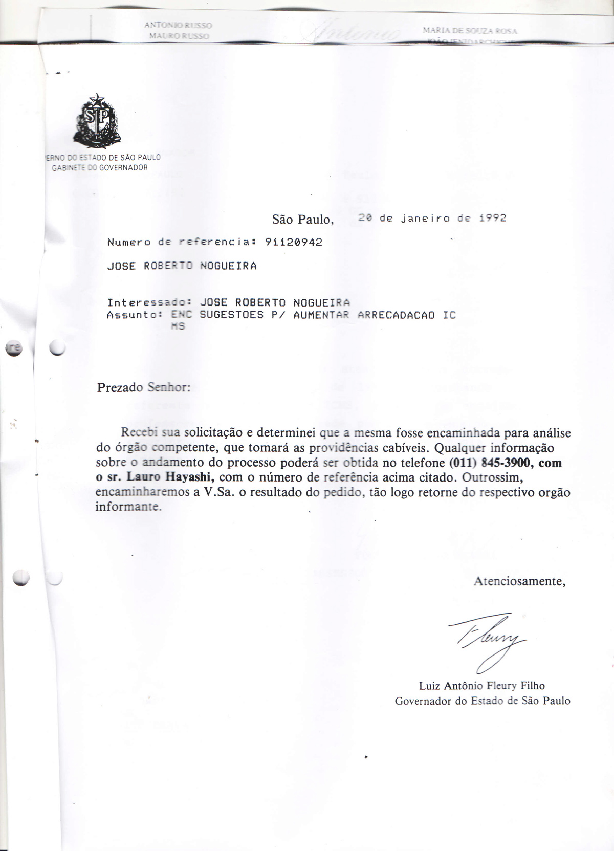 “O governador Fleury me respondeu alguns meses depois, demonstrando interesse no projeto, pois considerava importante para o governo, que poderia aumentar a arrecadação do ICMS”, enfatiza.