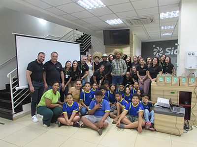 Equipe da Sicredi de Ituverava e alunos da EMEF “Professora Rosa de Lima” na visita a agência